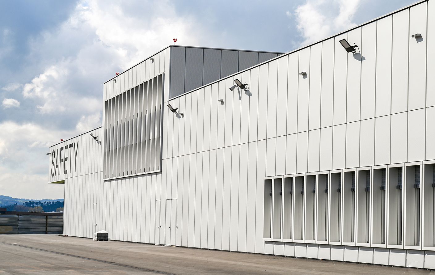 En février 2024, la halle existante a été démolie pour laisser place à la nouvelle construction. Les travaux ont commencé en mai 2024 et moins de deux ans plus tard, le nouveau bâtiment a été mis en service. La halle Safety a été construite en bois et ses cloisons sont en enduit de finition coloré en argile. L’infrastructure est reliée au réseau de chaleur à distance de l’aérodrome militaire et conforme au standard Minergie. Ce mode de construction réduit la consommation d’énergie et allonge la durée de vie du bâtiment.