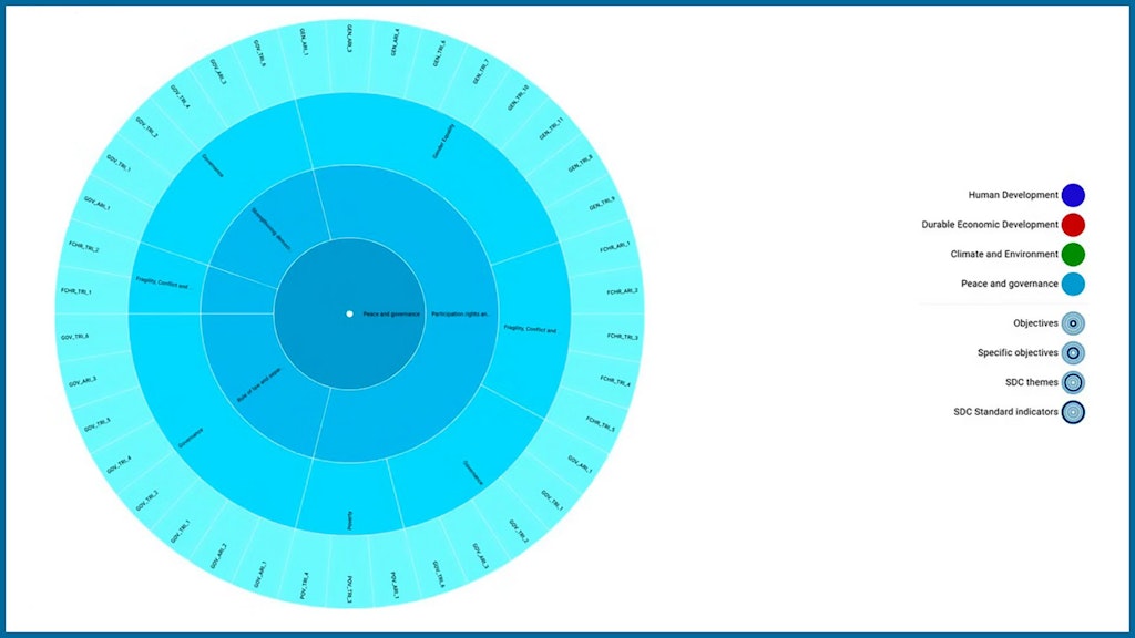Les thèmes de la paix, de la gouvernance et de l'égalité sont suivis dans le monde entier au moyen d'Indicateurs de Référence Agrégés (IRA) et d'Indicateurs de Référence Thématiques (IRT), qui constituent les indicateurs standardisés de la DDC (liste complète pour tous les thèmes de la DDC dans le navigateur d'indicateurs du RDM - accès interne uniquement).